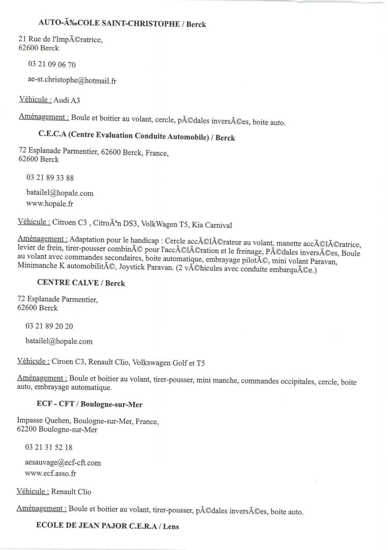 auto-écoles qui donnent des cours avec ces aménagements.